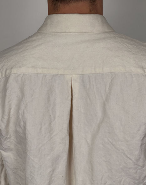 Classic Overshirt made in French « Métis » fabric (mix of cotton and linen) giving it a hand that only compares to original 19th century French fabrics it is based on. It is soft and crisp at the same time thanks to the balance and high quality of its cotton and linen fibers. This fabric is woven for the brand in France, using late 19th century industrial looms, reproducing the historic feel and durability known to be characteristic of French vintage workwear garments.