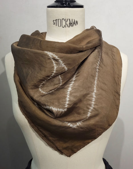 The print is created using a handsewn shibori technique, before naturally dying the scarf in Madder Red (Root, also called Garance) or Cachou Brown (Acacia Tree Bark).